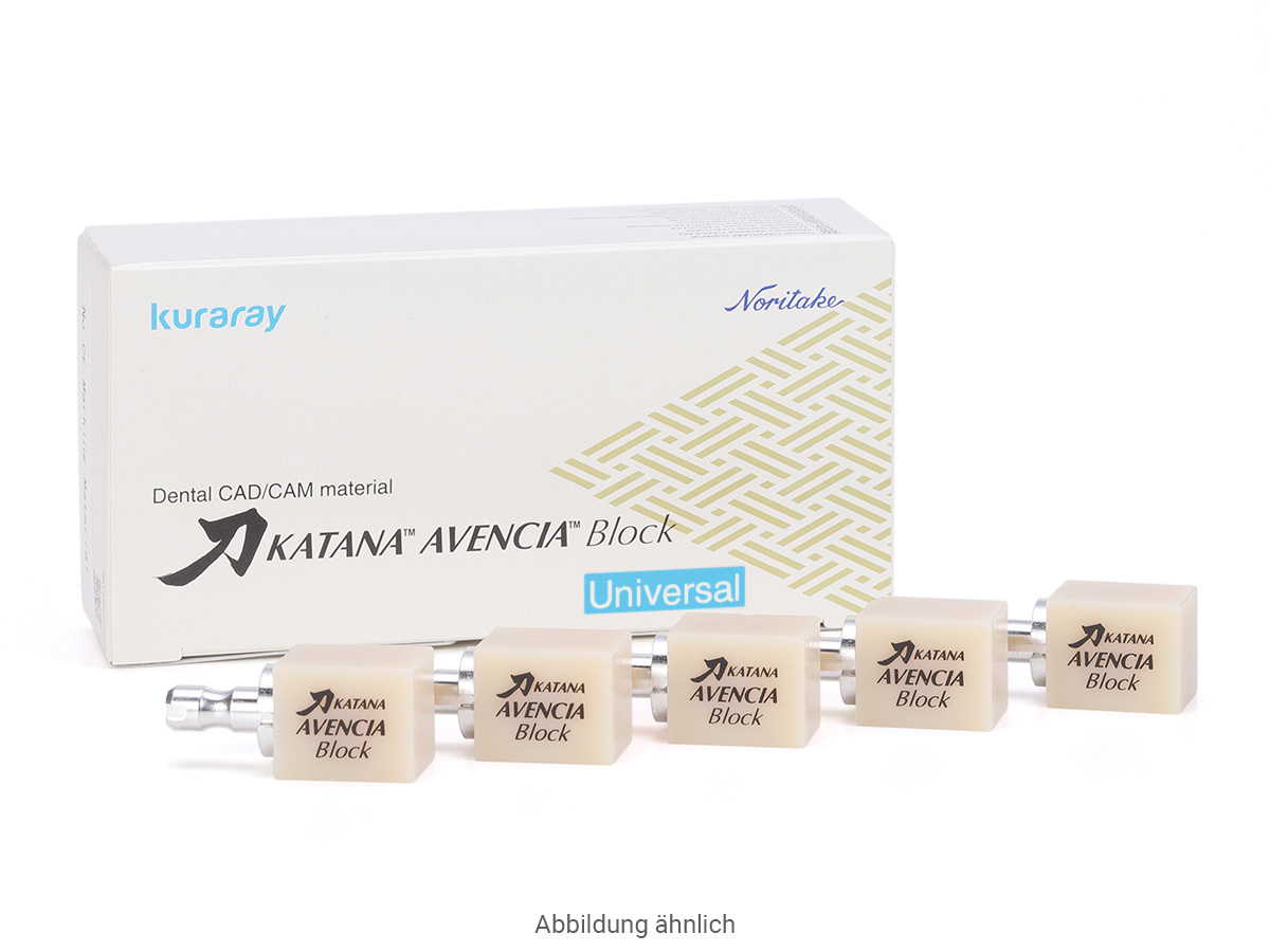 KATANA AVENCIA ist ein Hochleistungs-Komposit-Block aus einer Hybrid-Keramik für Restaurationen mit überlegenen mechanischen Eigenschaften und einer außergewöhnlichen Glanzbeständigkeit.- Hervorragende Polierbarkeit und Hochglanzstabilität.