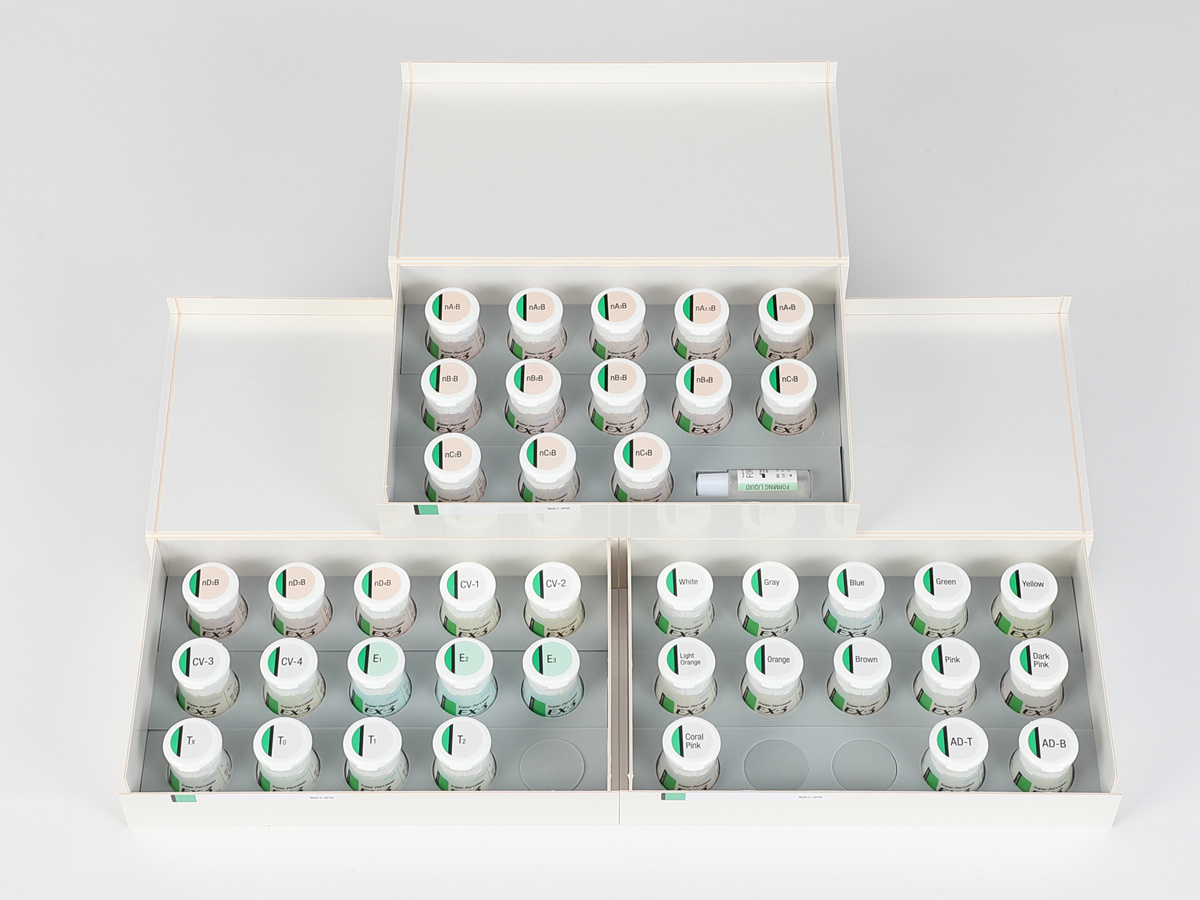 Die besonderen Eigenschaften der Verblendkeramik beruhen auf der feinen Partikelgröße. NORITAKE SUPER PORCELAIN EX-3 ist anderen Keramikmassen überlegen, weil sein Wärmeausdehnungskoeffizient (WAK) beim wiederholten Brennen stabil bleibt. Somit können bei Brücken mit größeren Spannweiten einzelne Einheiten genau angefertigt werden und wiederholte Brennvorgänge ohne größeres Risiko durchgeführt werden. Es ist für Metall-Keramik-Arbeiten mit Edelmetall-, Halbedelmetall-, NEM- und silberfreien Legierungen geeignet. Das Material besticht durch die ideale Fluoreszenz und seine besonders hohe Resistenz gegenüber Verfärbungen durch Silber. Diese Kombination an Eigenschaften macht NORITAKE SUPER PORCELAIN EX-3 zur idealen Wahl für Metall-Keramik-Restaurationen.