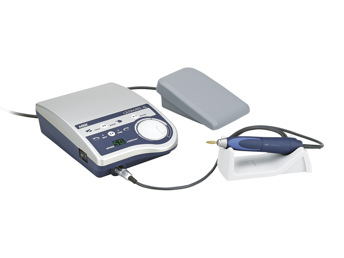 ULTIMATE XL ist der weltweit führende Labor-Mikromotor. Die ULTIMATE-XL-Serie ist bürstenlos, bietet sanfte Laufeigenschaften und viel Kraft. Dabei ist das 180°-Vektor-Kontrollsystem Garant für eine noch effizientere und stressfreiere Arbeit. Die Form des Handstücks wurde mit größter Sorgfalt unter vorrangiger Berücksichtigung ergonomischer und funktioneller Aspekte entworfen. Das Ergebnis ist ein Handstück, das die Handermüdung erheblich reduziert und die Arbeit selbst an den schwierigsten Arbeitsstücken über einen längeren Zeitraum erleichtert.Sämtliche Funktionen des Steuergeräts als Tischgerät werden über NSKs Mikrocomputer gesteuert, der gleichmäßiges Anlaufen und Stoppen gewährleistet und die herausragenden Gesamteigenschaften sicherstellt. (Die ULTIMATE-XL-Serie bietet eine Auswahl von vier Steuergeräten für alle räumlichen Gegebenheiten und individuellen Anwenderwünsche.) Die Micromotoren des Typs Torque haben im Vergleich zum Typ Compact ein um 2,7 Ncm höheres Drehmoment.