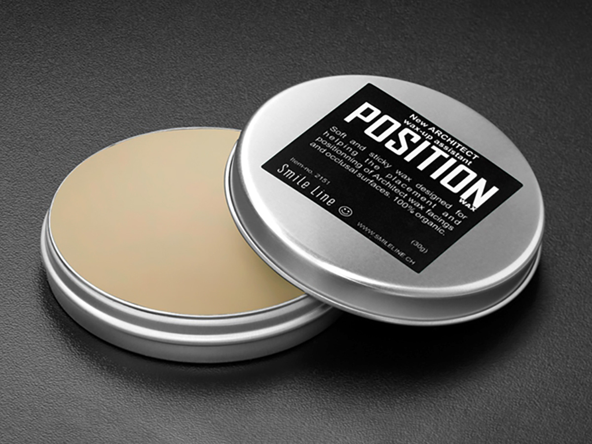 Das rein organische Wachs ist weich und klebrig zum Fixieren von Elementen wie Veneers oder für okklusale Oberflächen die in Silikonformen gegossen werden.