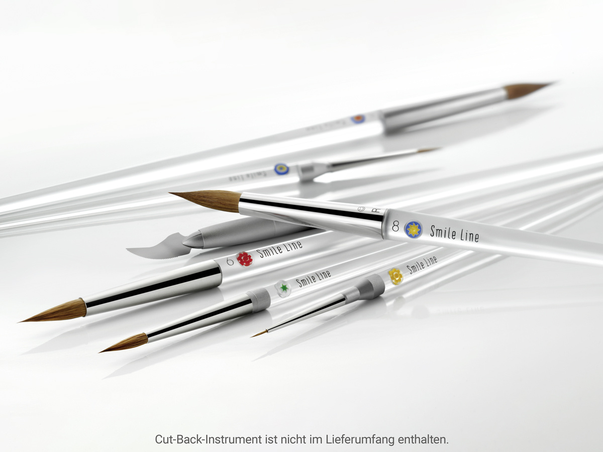 Die ikonische Produktlinie Clear Handle von Smile Line ist bei Keramikerinnen und Keramikern weltweit beliebt. Die Pinselkollektion "Clear Handle" wird aus erstklassigem und streng kontrolliertem Kolinsky-Haar hergestellt. Dies bietet die Gewissheit der bestmöglichen Qualität: eine sehr scharfe und stabile Spitze sowie eine überlegene Elastizität der Haare. Die Pinselspitzen sind langlebig und austauschbar.Die Form der Pinselspitze passt sich der Aufbautechnik oder dem Arbeitsstil an. Aus diesem Grund werden nicht nur eine, sondern zwei verschiedene Formen von #8-Pinselspitzen angeboten: die "Regular"-Spitze, die der Bestseller ist, und die "Long Tip" für diejenigen, die eine noch längere und schärfere Spitze bevorzugen.