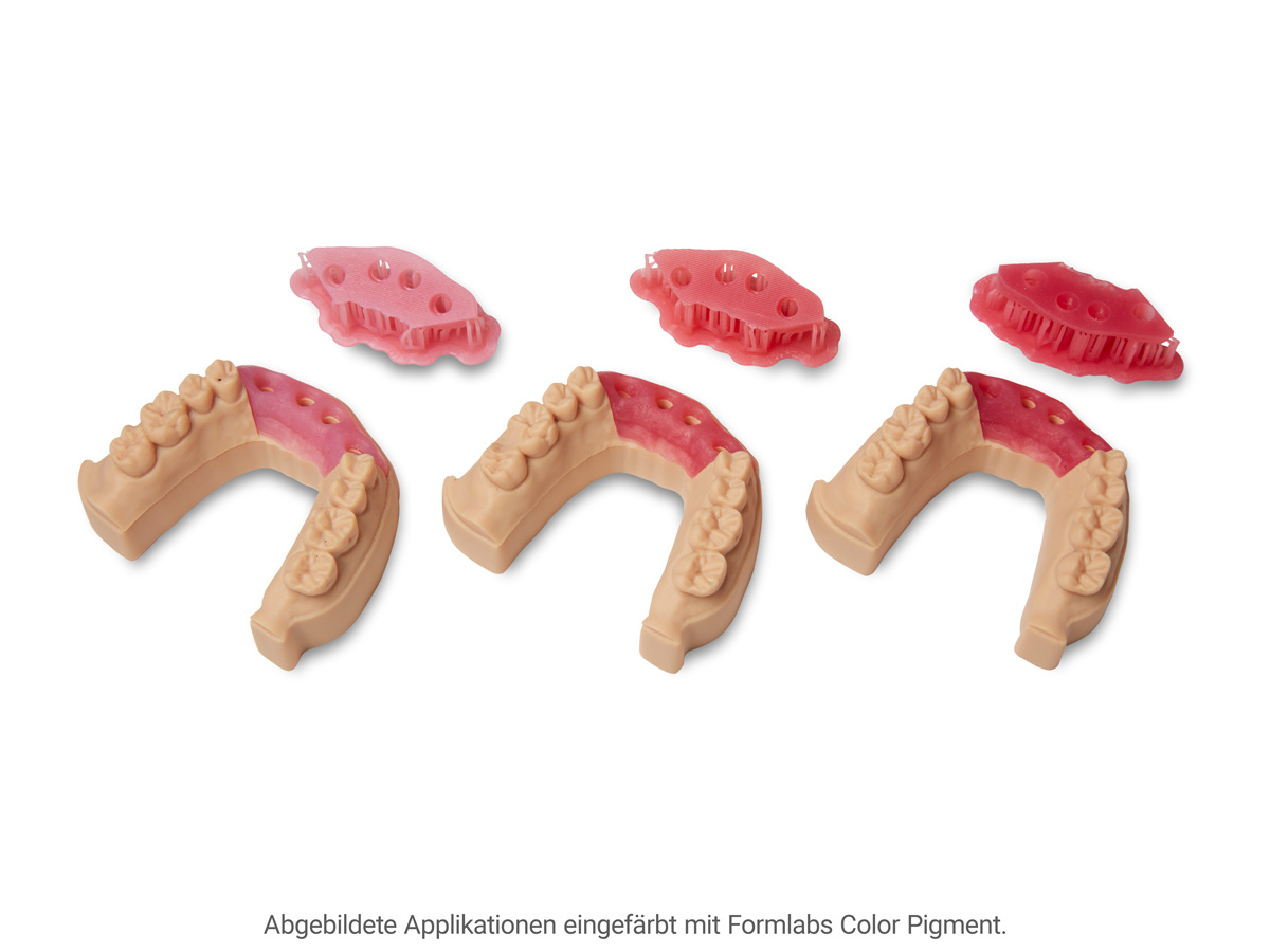 Zum Färben des Resins für Weichgewebeteile benötigen Sie die Pigmente Magenta, Yellow und White von Formlabs.