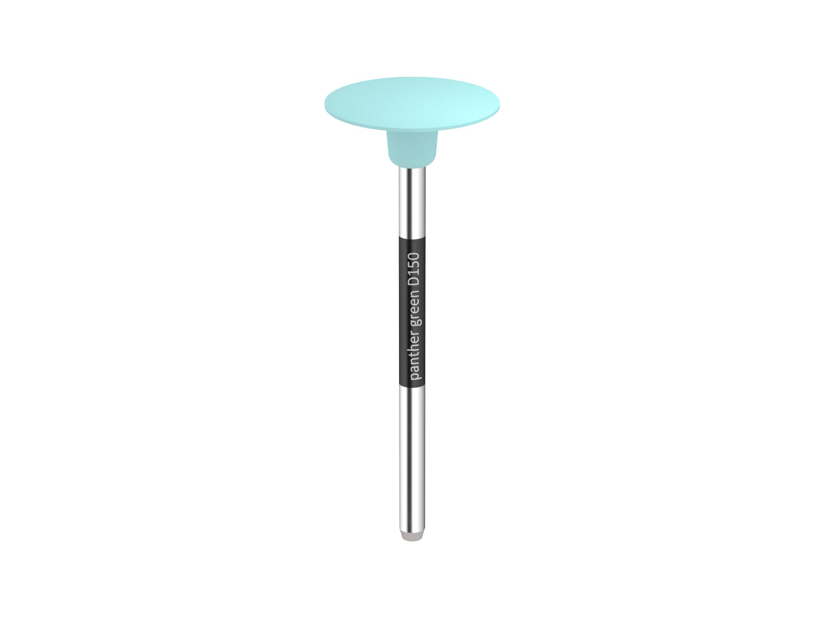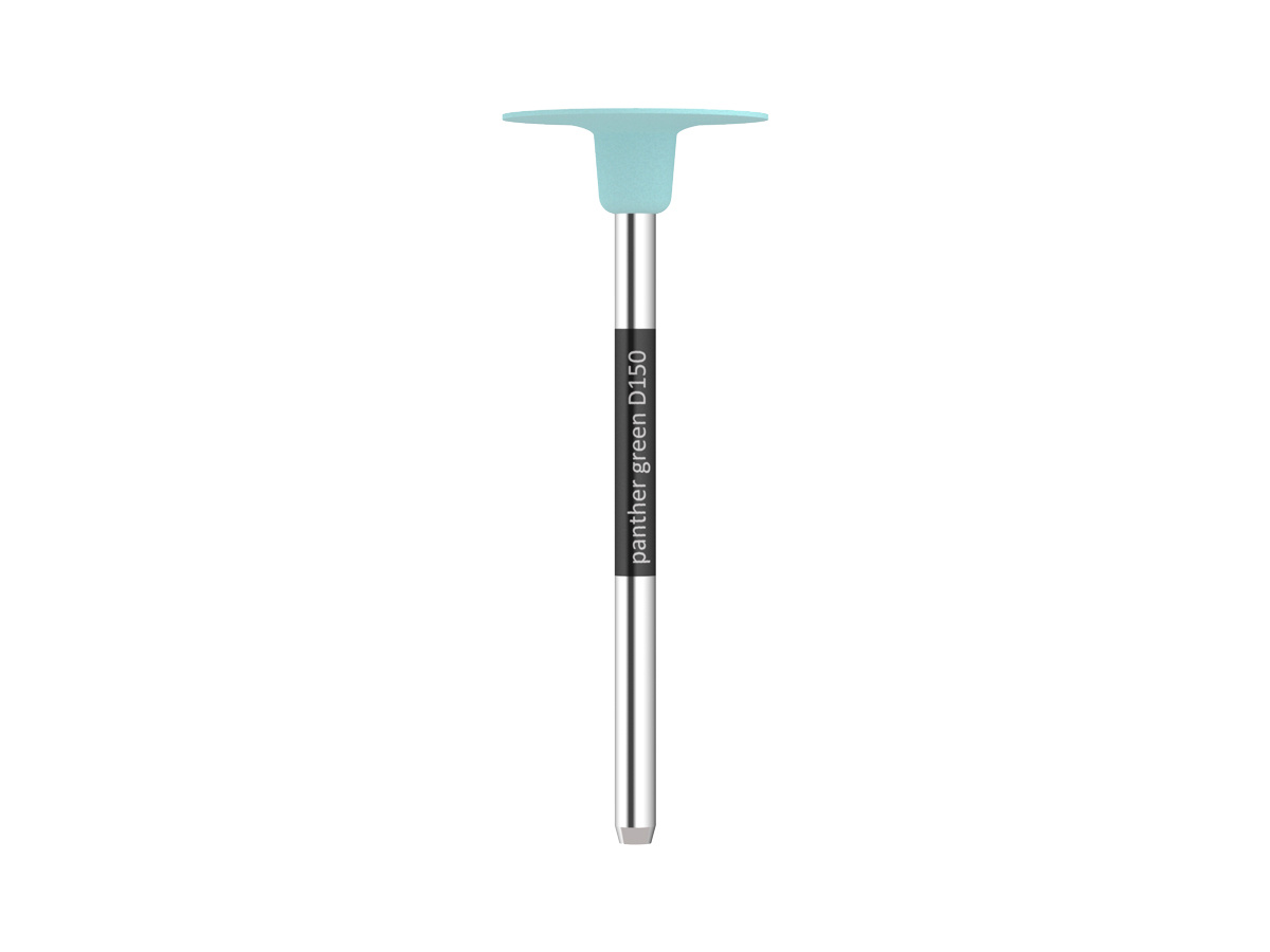 Die Panther Green series is used for perfect accentuation of unsintered zirconia. Panther Green Disc 150 is used for gentle seperation of interdental areas.Contouring zirconia in the green-body state is an important step in perfecting the application of the material. This step requires meticulous care because the CAD/ CAM-milled structures have a low hardness and can be irreparably damaged if not machined properly. Impurities of any kind, such as hand grease, improperly selected rotating instruments or general dirt, can have an enormous influence on the properties of the material. With the new Panther Green instruments, you are using specially matched instruments that you can rely on to perform safe, accurate and efficient machining every day.