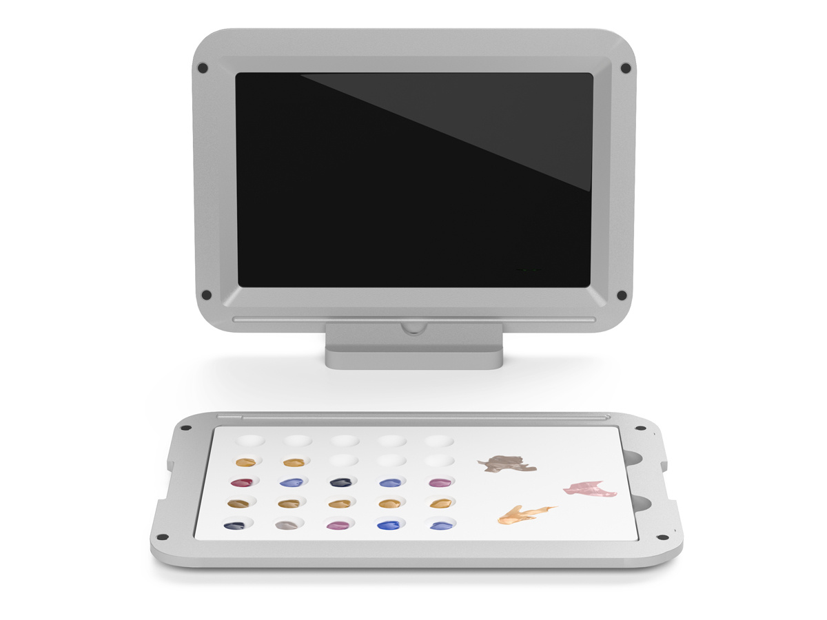 Der aufstellbare Deckel dient dazu, mit dem mitgelieferten Kreidestift die Farbpositionierung festzuhalten.Vorteile