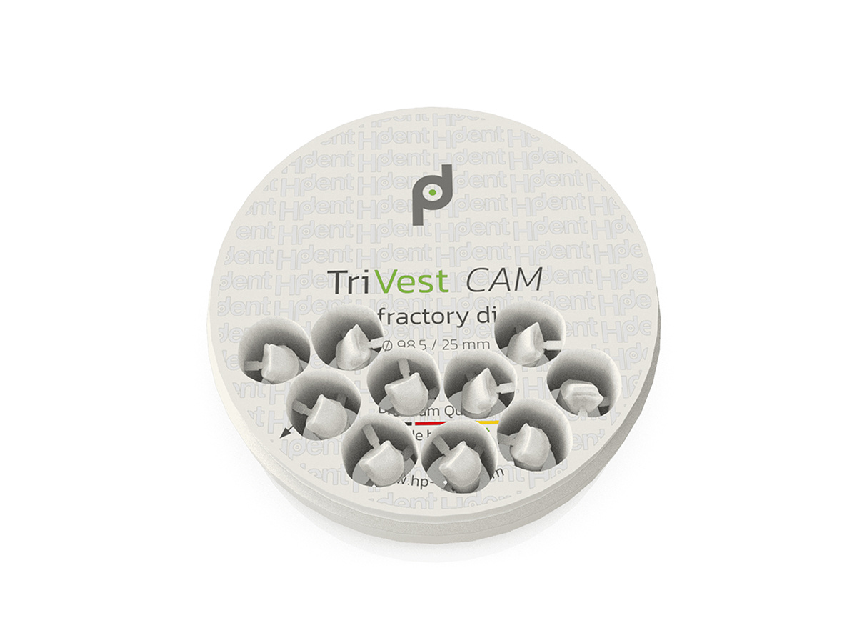 The TriVest CAM from HPdent is an innovative milling blank that has been specially developed for the digital fabrication of refractory dies. The material forms an ideal basis for precise and efficient workflows for the layering of veneers and crowns.Advantages