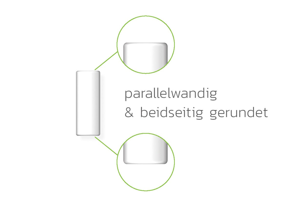 Da die Kanten der TriVest Plunger auf beiden Seiten abgerundet sind, spielt es keine Rolle mit welcher Seite er eingesetzt wird. Die Stempel mit einem Durchmesser von 13 mm haben eine enorm glatte und harte Oberfläche.