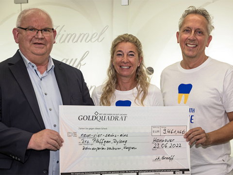 Dental gold worth € 9,461.46 has been donated by patients to the dental expert centre of Dr Natascha Dylong and Dr Christian Päffgen from Kerpen.