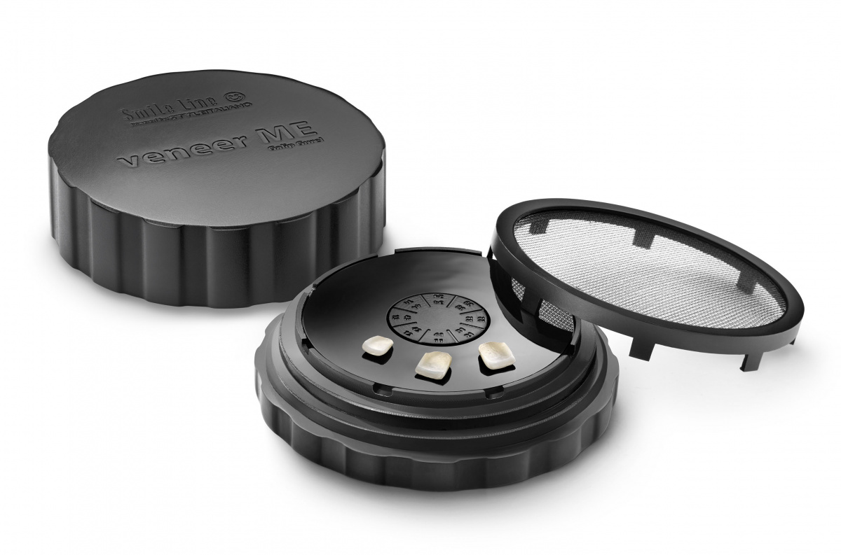 Sobald die Veneers auf dem Pad gesichert sind, wird der Membran-Rahmen für noch mehr Fixierung auf die Grundplatte der veneerME Box geklickt. Die extradünne Membran passt sich hervorragend an die Form des Veneers an. Danach nur noch den Deckel schließen und die Arbeit ist versandfertig. Die Membrane ist aus Nylon gefertigt und kann nach mehrmaligen Gebrauch bei Bedarf ersetzt werden.